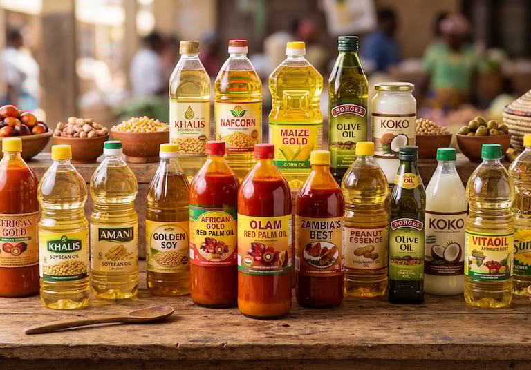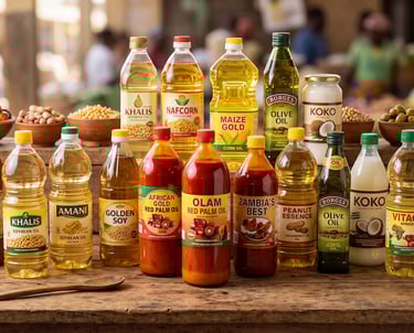 Red Palm Oil, Coconut Oil, Olive Oil, Corn Oil, Soy Bean Oil, Shea Butter Oil