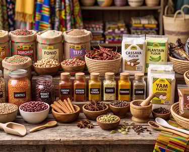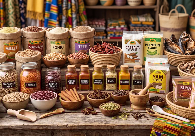 Ground Nutmeg, Ground Black Pepper, Ground Ginger, Ground Red Pepper, Smoked Mushrooms, Black eye-peas